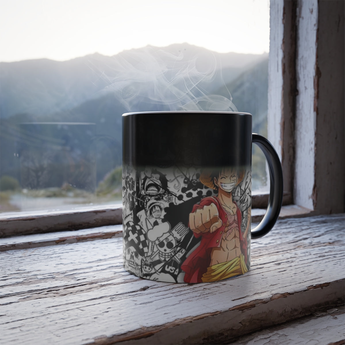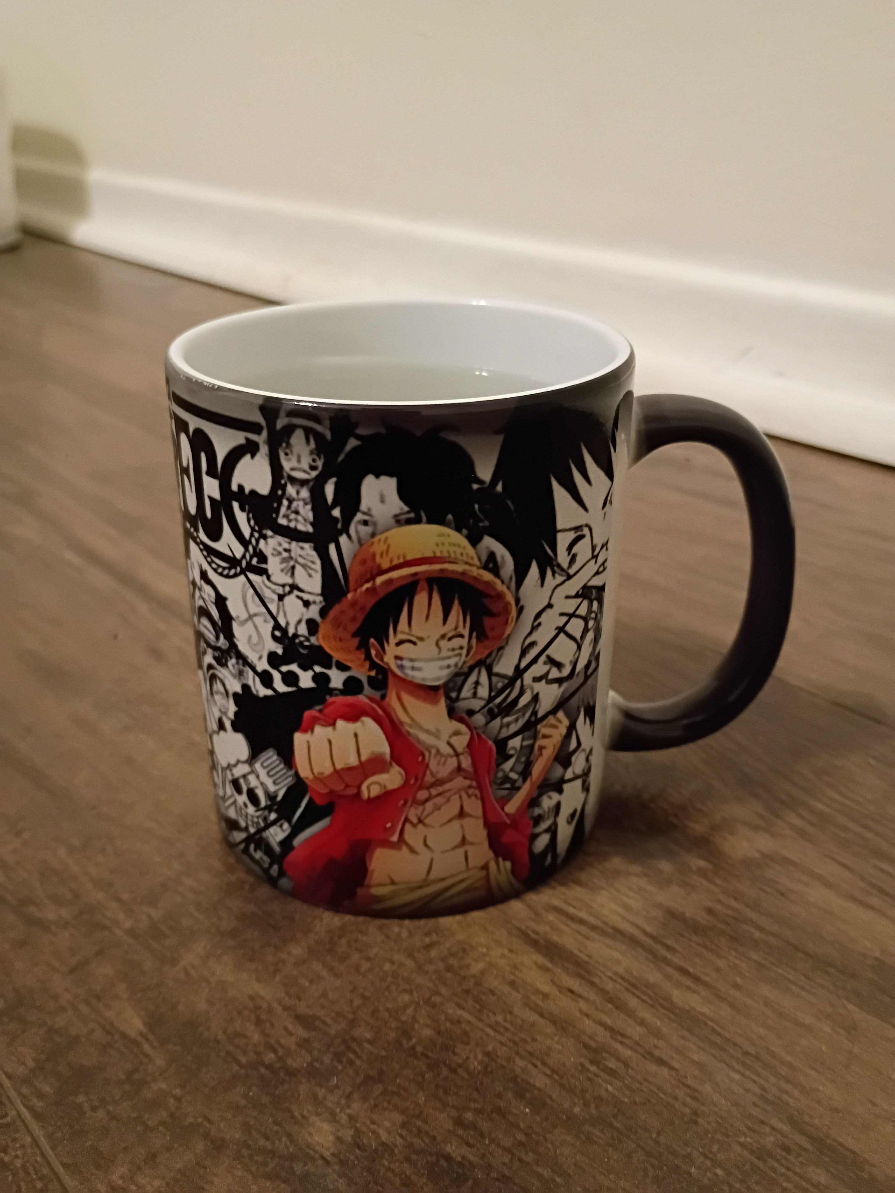 At first it just looks like a normal black mug, but once you pour in something hot, the Straw Hat Duo design starts showing up. Itās actually pretty cool to watch and doesnāt get old. Makes coffee feel less boring, especially if youāre a fan.